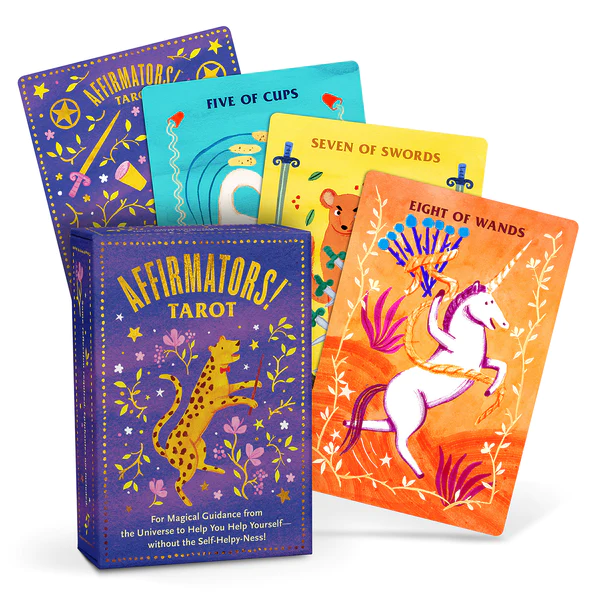 One of my decks is the Affirmators Tarot Deck. That one is colorful and relentlessly positive. I find this deck typically gives me upbeat, optimistic readings. I usually use this for my daily one-card Tarot draw in the morning to set positive intentions for the day.