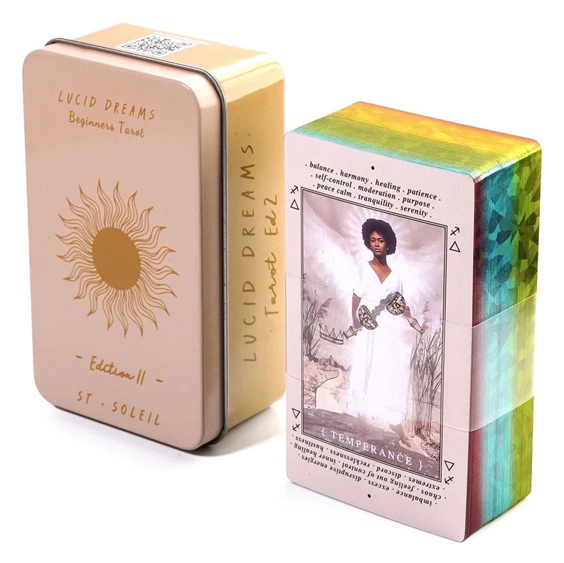 The other deck is called Lucid Dreams – the images are more intersectional and surreal, and seem to be loosely based on the Rider-Waite images. They’re accessible because they’re smaller and also have the meanings printed on the cards, but the readings I get from them also tend to be more sober. I find this deck tends to tell it like it is – not harsh, but direct. I use this card for my weekly spread; the reading that I use to really take stock of how things are going in my life.